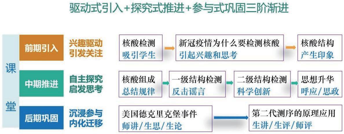 图6 驱动式引入 + 探究式推进 + 参与式巩固三阶渐进教学模式