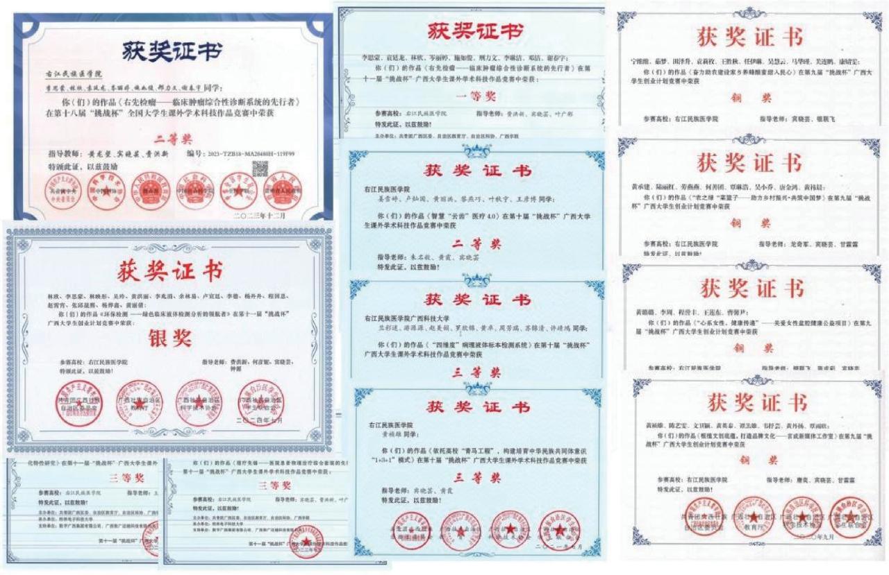 在学业成绩上,呈现积极向好态势,优秀率提升7%,不合格率降低5%,学生课程满意度从82%提升至95%,课堂互动频次增加2.3倍,教学质量与学生学习效果的双重提升。同时,学生们在学术科研与科普宣传方面也表现突出,累计发表论文22篇,发布科普推文125篇,制作宣传海报48份,学生在知识传播与应用方面能力突出。学生综合能力提升层面,学生团队获国家级创新创业项目立项18项、自治区级项目28项,在“互联网 +”、“挑战杯”等重要创新创业赛事中,斩获国家级二等奖1项、自治区一等奖3项,自治区级金奖1项、银奖2项、铜奖6项等诸多荣誉,展现出强大的创新与实践能力,学生们的科研探索精神与创新思维不断强化(如图14-17)。